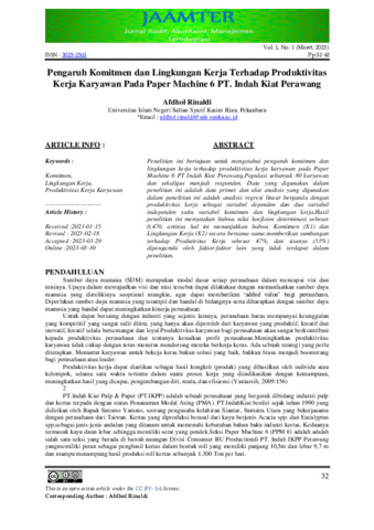 Afdhol, Rinaldi (2023) Pengaruh komitmen dan lingkungan kerja terhadap produktivitas kerja karyawan pada paper machine 6 PT. Indah Kiat Perawang. Jurnal Audit, Akuntansi, Majanemen Terintegrasi, 1 (1): 4. pp. 32-42. ISSN 3025-2563