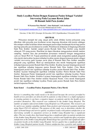 Ni, Nyoman Putu Martini and Ainur, Rochmah and Arik, Susbiyan (2023) Study loyalitas pasien dengan kepuasan pasien sebagai variabel intervening pada layanan rawat jalan di Rumah Sakit Paru Jember. Jurnal Manajemen Dan Bisnis Indonesia, 9 (2): 6. pp. 253-267. ISSN 2460-9471