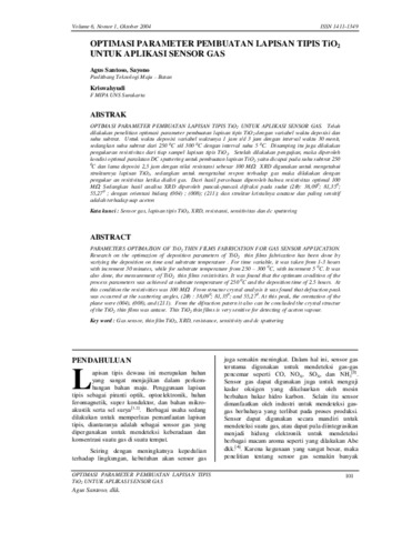 OPTIMASI PARAMETER PEMBUATAN LAPISAN TIPIS TiO2 UNTUK APLIKASI SENSOR GAS. Telah