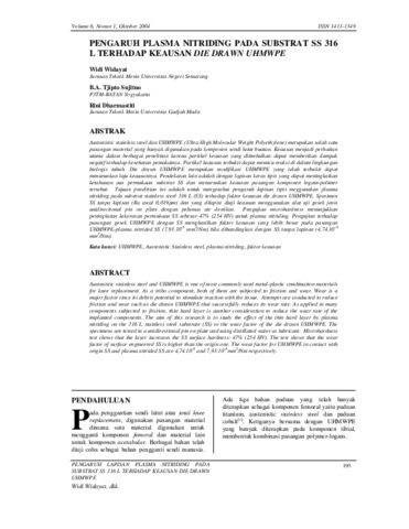 UHMWPE-plasma nitrided SS (7,93.10-8 mm3/Nm) bila dibandingkan dengan SS tanpa lapisan (4,74.10-8