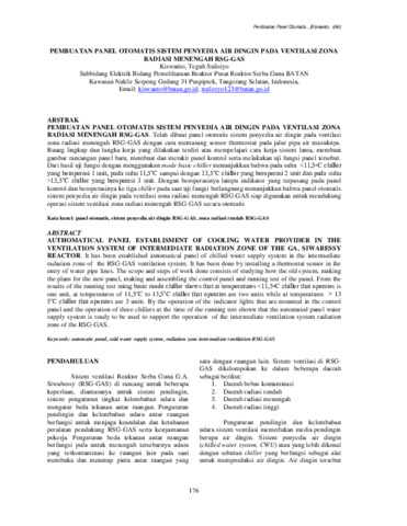 Kata kunci: panel otomatis, sistem penyedia air dingin RSG-GAS, zona radiasi rendah RSG-GAS