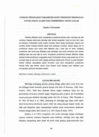 Tjandra, Chrismadha (1998) Litbang pengkajian parameter kunci produksi mikroalga untuk pakan alami pada pembenihan udang galah. Technical Report. Pusat Penelitian Limnologi, Bogor.
