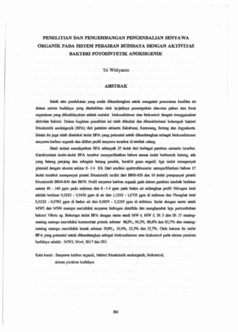 Tri, Widiyanto (1998) Penelitian dan pengembangan pengendalian senyawa organik pada sistem perairan budidaya dengan aktivitas bakteri fotosintetik anoksigenik. Technical Report. Pusat Penelitian Limnologi, Bogor.