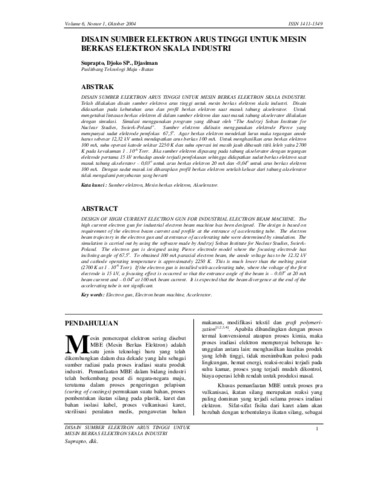 Telah dilakukan disain sumber elektron arus tinggi untuk mesin berkas elektron skala industri. Disain