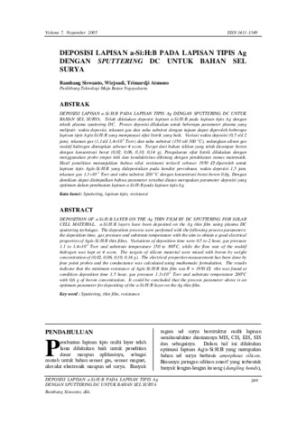 DEPOSISI LAPISAN a-Si:H:B PADA LAPISAN TIPIS Ag DENGAN SPUTTERING DC UNTUK