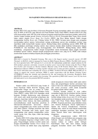 Yusi Eko Y, YEY and Imron, Muhammad (2013) MANAJEMEN PENGOPERASIAN REAKTOR RSG-GAS. PROSIDING SEMINAR NASIONAL TEKNOLOGI DAN APLIKASI REAKTOR NUKLIR. ISSN 978-979-17109-8-5