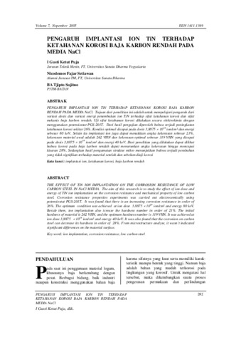 Puja, I Gusti Ketut and Setiawan, Nicodemos Fajar and Sujitno, Tjipto (2005) PENGARUH IMPLANTASI ION TiN TERHADAP KETAHANAN KOROSI BAJA KARBON RENDAH PADA MEDIA NaCl. Prosiding Pertemuan dan Presentasi Ilmiah Teknologi Akselerator dan Aplikasinya, 7. pp. 282-287. ISSN 1411-1349
