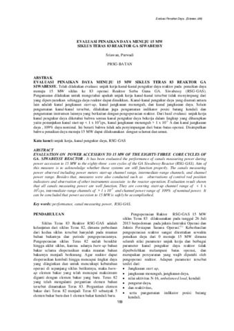 EVALUASI PENAIKAN DAYA MENUJU 15 MW SIKLUS TERAS 83 REAKTOR GA SIWABESSY. Telah dilakukan evaluasi unjuk kerja kanal-kanal pengukur daya reaktor pada penaikan daya menuju 15 MW siklus ke 83 operasi Reaktor Serba Guna GA. Siwabessy (RSG-GAS). Pengamatan dilakukan untuk mengetahui apakah unjuk kerja kanal-kanal tersebut tidak menyimpang dari yang dipersyaratkan sehingga daya reaktor dapat dinaikkan.. Kanal-kanal pengukur daya yang diamati antara lain adalah kanal jangkauan start-up, kanal jangkauan menengah, dan kanal jangkauan daya. Selain pengamatan kanal-kanal tersebut, dilakukan juga pengamatan indikator posisi batang kendali dan pengamatan instrumen lainnya yang berkaitan dengan pengoperasian reaktor. Dari hasil evaluasi unjuk kerja kanal pengukur daya diketahui bahwa semua kanal pengukur daya bekerja dalam lingkup yang diharapkan yaitu penunjukan kanal start-up < 1 x 105cps, kanal jangkauan menengah > 1 x 10-7 A dan kanal jangkauan daya , 109% daya nominal. Ini berarti bahwa tidak ada penyimpangan dari batas-batas operasi. Disimpulkan bahwa penaikan daya menuju 15 MW dapat dilaksanakan dengan selamat dan aman.