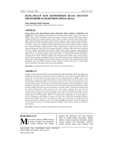 keV/20 mA. Telah dilakukan perancangan dan konstruksi beam shutter mesin berkas elektron