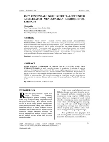 Silkahudin, Silakhudin and Heranudin, Heranudin and Suryanto, Hari (2005) UNIT PENGENDALI POSISI SUDUT TARGET UNTUK AKSELERATOR MENGGUNAKAN MIKROKONTROLER 89C51. Prosiding Pertemuan dan Presentasi Ilmiah Teknologi Akselerator dan Aplikasinya, 7. pp. 79-87. ISSN 1411-1349
