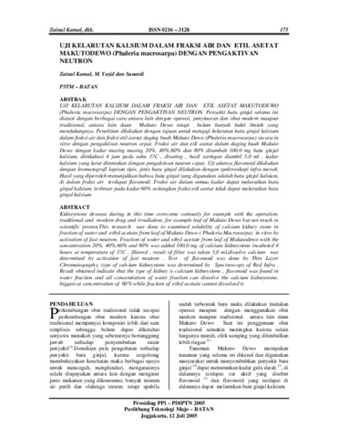 Kamal, Zainul and Yazid, Moch and Sunardi, Sunardi (2005) UJI KELARUTAN KALSIUM DALAM FRAKSI AIR DAN ETIL ASETAT MAKUTODEWO (Phaleria macrosarpa) DENGAN PENGAKTIVAN NEUTRON. Prosiding PPI – PDIPTN 2005 Puslitbang Teknologi Maju. pp. 175-180. ISSN 0216 – 3128