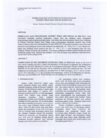 Kusno, Kusno and Harsono, Harsono and hendra prasetya, hp and Royadi, Royadi and Solehudin, Dede (2002) PEMBUATAN DAN UJI FUNGSI ALAT PENANGANAN ELEMEN TERAS MULTIGUNA DI RSG-GAS. PROSIDING SEMINAR HASIL PENELITIAN P2TRR. ISSN 0854-5278