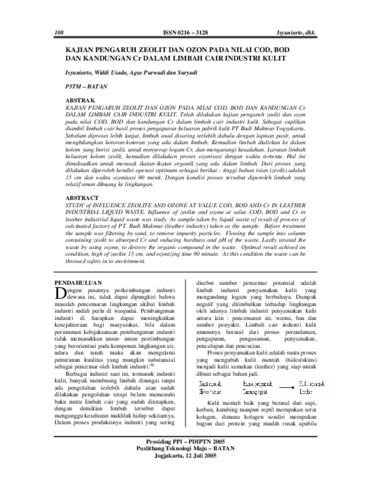 DALAM LIMBAH CAIR INDUSTRI KULIT. Telah dilakukan kajian pengaruh zeolit dan ozon