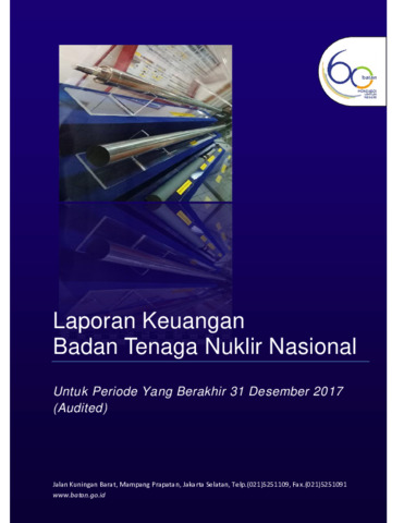 Hermansyah, Dendang and Rafida, Rafida (2017) Laporan Keuangan Badan Tenaga Nuklir Nasional Untuk Periode Yang Berakhir 31 Desember 2017 (Audited). Manual. Biro Umum.