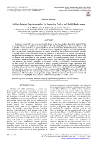 A., H. Abd El-Aziz and K., El-Sabrout and M., Abo Ghanima (2024) Sodium butyrate supplementation for improving poultry and rabbit performance. Tropical Animal Science Journal, 47 (2): 15. pp. 252-264. ISSN 2615-787X