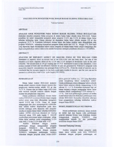 Tukiran Surbakti, TS (2002) ANALISIS PENGOTOR PADA BAHAN BAKAR SILSIDA TERAS RSG-GAS. PROSIDING SEMINAR HASIL PENELITIAN P2TRR. ISSN 0854-5278