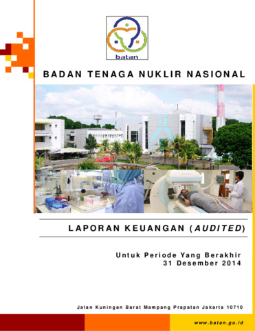 Hermansyah, Dendang and Rafida, Rafida (2014) Laporan Keuangan Badan Tenaga Nuklir Nasional Untuk Periode Yang Berakhir 31 Desember 2014. Manual. Biro Umum.
