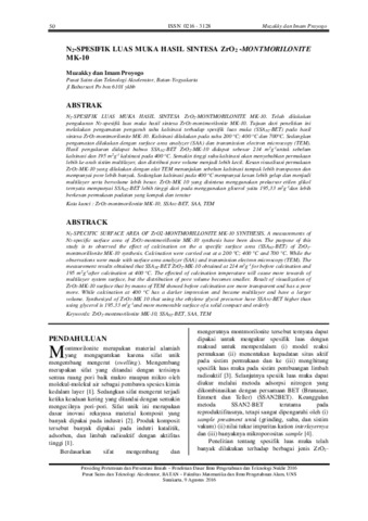 Muzakky, akhmad and Prayogo, Imam (2016) N2-SPESIFIK LUAS MUKA HASIL SINTESA ZrO2-MONTMORILONITE MK-10. Prosiding Pertemuan dan Presentasi Ilmiah – Penelitian Dasar Ilmu Pengetahuan dan Teknologi Nuklir 2016. pp. 50-56. ISSN 0216 - 3128