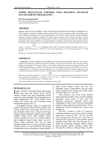 MODEL PENYUSUTAN PARTIKEL PADA PELINDIAN TITANIUM DALAM ILMENIT MEMAKAI HCl.