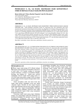 ekstraksi dari konsentrat itrium dengan kolom penukar ion. Penelitian ini bertujuan untuk memisahkan Y, Dy,