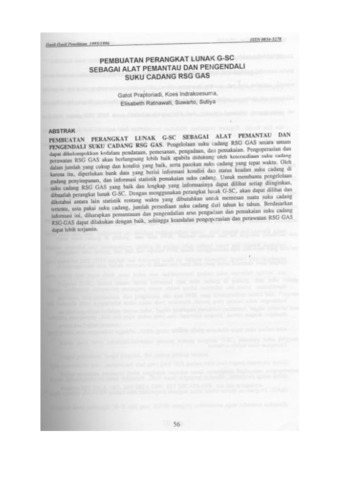 Gatot Praptoriadi, GP and Koes Indrakoesoema, KI (1995) PEMBUATAN PERANGKAT LUNAK G-SC SEBAGAI ALAT PEMANTAU DAN PENGEDALI SUKU CADANG RSG-GAS. PROSIDING SEMINAR HASIL PENELITIAN PRSG. ISSN 0854-5278