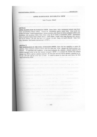 Sapto Prayogo, SP and Suhadi, Suhadi (1995) ASPEK RADIOLOGIS DI FASILITAS ISFSF. PROSIDING SEMINAR HASIL PENELITIAN PRSG. ISSN 0854-5278