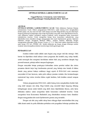Unggul Hartoyo, UH and Yulius Sumarno, YS and Anto Setiawanto, AS (2005) OPTIMASI KINERJA LABORATORIUM CACAH. PROSIDING SEMINAR HASIL PENELITIAN PTRR. ISSN 0854-5278