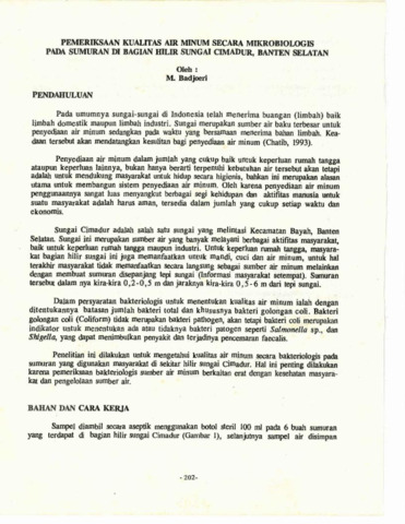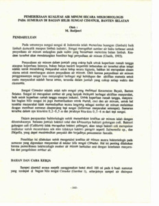 Muhammad, Badjoeri (1994) Pemeriksaan kualitas air minum secara mikrobiologis pada sumuran di bagian hilir Sungai Cimadur, Banten Selatan. In: Prosiding Proyek Penelitian dan Pengembangan Sumber Daya Perairan Tawar 1993/1994, Februari 1994, Gedung Kusnoto LIPI Bogor.