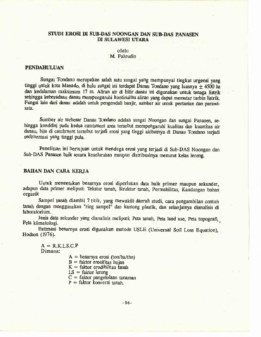 M., Fakhrudin (1994) Studi erosi di Sub-DAS Noongan dan Sub-DAS Panasen di Sulawesi Utara. In: Prosiding Proyek Penelitian dan Pengembangan Sumber Daya Perairan Tawar 1993/1994, Februari 1994, Gedung Kusnoto LIPI Bogor.