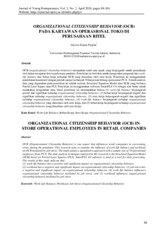 Jalesiva, Kanza Puspita (2024) Organizational Citizenship Behavior (OCB) pada karyawan operasional toko di perusahaan ritel. Journal of Young Entrepreneurs, 3 (2): 6. pp. 88-104. ISSN 2964-8521