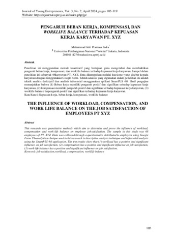Muhammad, Adri Pramana Indra (2024) Pengaruh beban kerja, kompensasi, dan work life balance terhadap kepuasan kerja karyawan PT. XYZ. Journal of Young Entrepreneurs, 3 (2): 7. pp. 105-119. ISSN 2964-8521