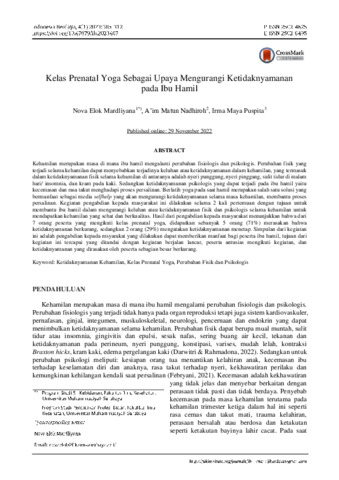 Nova, Elok Mardliyana and A’im, Matun Nadhiroh and Irma, Maya Puspita (2023) Kelas prenatal yoga sebagai upaya mengurangi ketidaknyamanan pada ibu hamil. Indonesia Berdaya, 4 (1): 38. pp. 305-312. ISSN 2721-0669
