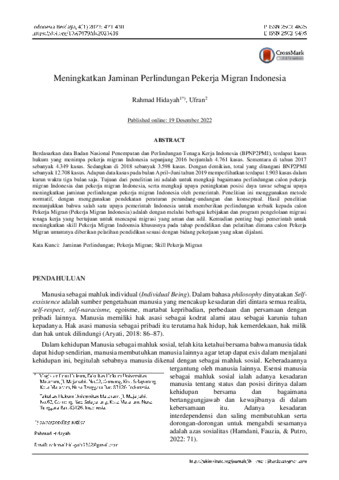 Rahmad, Hidayah and Ufran, Ufran (2023) Meningkatkan jaminan perlindungan pekerja migran Indonesia. Indonesia Berdaya, 4 (1): 54. pp. 423-430. ISSN 2721-0669