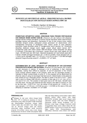 penentuan harga difusifitas aksial Zr menggunakan kolom penukar ion. Penentuan