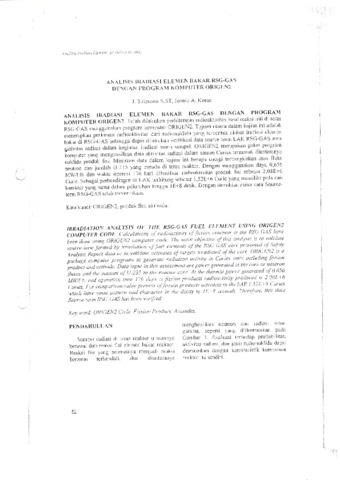 Jaja Sukmana, JS and Joni A Korua, JAK (2012) ANALISIS IRADIASI ELEMEN BAKAR RSG-GAS DENGAN PROGRAM KOMPUTER ORIGEN 2. Buletin "Reaktor". ISSN ISSN: 0216-2695