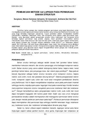 Sungkno, Sungkono and Kartaman Ajiriyanto, Maman and Ismarwanti, Sri and Sari Dei Putri, Anditania (2018) PEMBAKUAN METODE UJI LAPISAN PADA PERMUKAAN BAHAN STRUKTUR. Prosiding Seminar Hasil-hasil Penelitian EBN Tahun 2017, - (-). pp. 191-197. ISSN 0854-5561