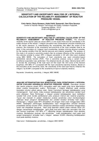 Entin Hartini, EH and Roziq Himawan, rh and Abdul Hafid, AH and Deswandri, DW (2017) SENSITIVITY AND UNCERTAINTY ANALYSIS OF J INTEGRAL CALCULATION OF THE RELIABILITY ASSESSMENT OF REACTOR PRESSURE VESSEL. SENSITIVITY AND UNCERTAINTY ANALYSIS OF J INTEGRAL CALCULATION OF THE RELIABILITY ASSESSMENT OF REACTOR PRESSURE VESSEL. pp. 115-122. ISSN 2355-7524
