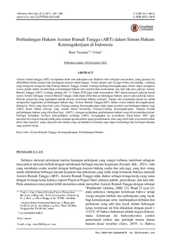 Reni, Yusmita and Ufran, Ufran (2024) Perlindungan hukum asisten rumah tangga (ART) dalam sistem hukum ketenagakerjaan di Indonesia. Indonesia Berdaya, 4 (2). pp. 541-548. ISSN 2721-0669