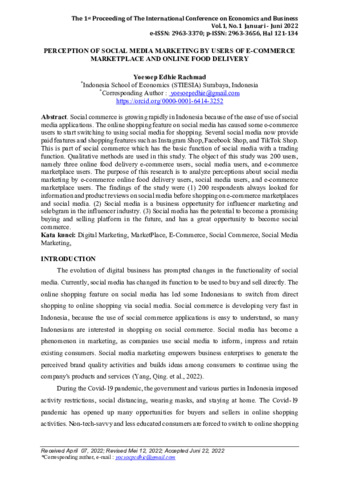 Yoesoep, Edhie Rachmad (2022) Perception of social media marketing by users of e-commerce marketplace and online food delivery. In: The 1st Proceeding of The International Conference on Economics and Business.