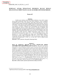 Kendala utama budidaya udang galah adalah produktivitas yang rendah, terutamakarena tingkat kelangsungan hidup yang rendah akibat kanibalisme. Untuk meningkatkan pemanfaatan kolom air pada media budidaya udang galah (Macrobrachium rosenbergii), sebuah percobaan budidaya udang galah menggunakan pelindung buatan (disebut “apartemen udang galah”) yang terbuat dari bambu dilakukan. Apartemen udang galah dengan panjang sisi-sisi bilik 5 cm disediakan di dalam akuarium (60x20x20 cm) untuk tempat menempel udang yang dipelihara. Percobaan I dilakukan untuk membandingkan hasil kelangsungan hidup udang menggunakan apartemen dengan tanpa apartemen. Percobaan II dilakukan untuk mencari kepadatan tebar yang optimum pemeliharaan udang menggunakan apartemen. Variasi kepadatan tebar udang yang dipakai adalah 15, 20, 25 dan 30 ekor/akuarium. Hasil yang didapatkan adalah kelangsungan hidup udang galah lebih baik secara signifikan pada tempat yang dilengkapi dengan apartemen. Tingkat kelangsungaan hidup selama 21 haripemeliharaan dengan apartemen adalah 73,33 ± 9,43 % dibandingkan dengan tanpaapartemen, 6,67 ± 0,01 %. Kepadatan tebar udang terbaik yang didapatkan adalah 15 ekor/akuarium, dengan tingkat kelangsungan hidup 80 ± 9.42%. Namun demikian,kelangsungan hidup pada tingkat kepadatan 20, 25 dan 30 ekor/akuarium dengan nilai lebih rendah sebesar masing-masing 75 ± 0.01, 70 ± 2.83 dan 66.67 ± 0.01 %, tidaklah berbeda nyata secara statistik.