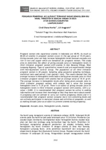 Ibu hamil yang mengalami anemia di Indonesia sebesar 48,9%. Sebanyak 84,6% anemia pada ibu hamil terjadi pada kelompok umur 15-24 tahun. Pemberian jus alpukat dapat membantu meningkatkan kadar hemoglobin karena alpukat kaya akan zat besi dan tembaga yang bermanfaat bagi ibu hamil. Penelitian ini bertujuan mengetahui pengaruh pemberian jus alpukat terhadap kadar hemoglobin ibu hamil trimester III dengan anemia di Desa Atar Bawang Kabupaten Lampung Barat. Jenis penelitian kuantitatif dan rancangan pra eksperiment dengan Non-Equivalent Control Group. Populasi seluruh ibu hamil trimester III sebanyak 20 orang. Pengambilan sampel menggunakan teknik purposive sampling, uji statistik yang digunakan uji t berpasangan (paired t test). Hasil penelitian diketahui rata-–rata peningkatan kadar hemoglobin sebelum diberikan jus alpukat pada ibu hamil trimester III dengan anemia mempunyai nilai rata-rata 10,51 gr/dl Rata–rata peningkatan kadar hemoglobin sesudah diberikan jus alpukat pada ibu hamil trimester III dengan anemia mempunyai nilai rata-rata kadar hemoglobin 11,35 gr/dl. Ada pengaruh pemberian jus alpukat terhadap kadar hemoglobin pada ibu hamil trimester III dengan anemia, dengan p-value = 0,000. Disarankan ibu hamil agar aktif dalam mencari informasi dan lebih meningkatkan pengetahuan agar lebih mengetahui tentang anemia pada kehamilan serta disarankan untuk melakukan pemeriksaan kehamilan secara rutin dan disarankan ibu hamil lebih banyak mengkonsumsi makanan yang mengandung zat besi dan untuk dapat aktif mengikuti kelas ibu serta kegiatan di posyandu. serta menjadikan jus alpukat sebagai salah satu upaya untuk pencegahan anemia dalam kehamilan.
