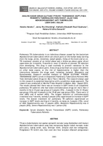 | Uncontrolled Keywords: | Kadar Serum Glutamic Pyruvic Transminase (SGPT), Penderita tuberkulosis paru, Serum Glutamic Pyruvic Transminase, Mycobacterium tuberculosis, Pulmonary tuberculosis, Patients |