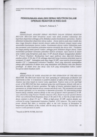 Surian Pinem, SP and Tukiran Surbakti, TS (1999) PENGGUNAAN ANALISISI DERAU NEUTRON DALAM OPERASI REAKTOR DI RSG GAS. JURNAL TEKNOLOGI REAKTOR NUKLIR TRI DASA MEGA.