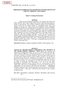 Sulastri, Sulastri and Sulung, Nomosatryo (2005) Perubahan komposisi dan kelimpahan fitoplankton Situ Cibuntu, Cibinong, Jawa Barat. Limnotek : Perairan Darat Tropis di Indonesia, 12 (2): 10. pp. 92-102. ISSN 2549-8029