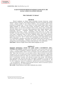 Muh., Fakhrudin and Lukman, Lukman (2004) Kajian potensi erosi di daerah tangkapan air Danau Lindu Sulawesi Tengah. Limnotek : Perairan Darat Tropis di Indonesia, 11 (2): 1. pp. 1-8. ISSN 2549-8029