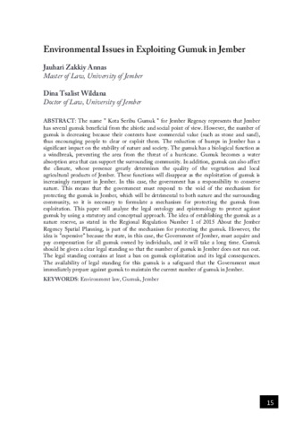 Jauhari, Zakkiy Annas and Dina, Tsalist Wildana (2023) Environmental issues in exploiting Gumuk in Jember. In: Proceeding The 1st International Conference on Law and Society, 20 November 2021, Aula Konferensi, Fakultas Hukum, Universitas Jember.