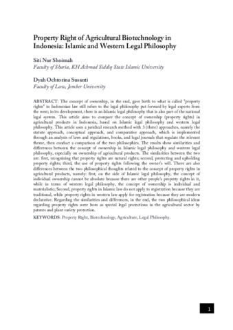 Siti, Nur Shoimah and Dyah, Ochtorina Susanti (2023) Property right of agricultural biotechnology in Indonesia: Islamic and western legal philosophy. In: Proceeding The 1st International Conference on Law and Society, 20 November 2021, Aula Konferensi, Fakultas Hukum, Universitas Jember.