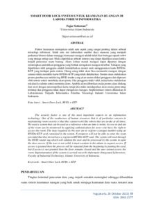 Faktor keamanan merupakan salah satu aspek yang sangat penting dalam sebuah teknologi informasi. Salah satu sisi kelemahan sumber daya manusia yang menjadi perhatian khusus dalam menjaga keamanan ruangan adalah tidak bisa bertugas seperti robot yang terjaga setiap saat. Maka diperlukan sebuah sistem yang dapat dijadikan acuan ketika terjadi pencurian suatu barang. Akses keluar masuk ruangan dapat dipantau dengan menerapkan autentikasi pengguna yang berhak mengakses ruangan tersebut. Tahapan yang diperlukan oleh pengguna adalah mendaftarkan nomor unik menggunakan kartu RFID/eKTP yang terdapat pada sistem. Orang asing tidak akan bisa memasuki ruangan dengan catatan tidak memiliki kartu RFID/e-KTP yang telah didaftarkan. Sistem akan melakukan proses pembacaan melalui tag RFID reader yang akan memvalidasi pengguna dan diproses oleh sistem untuk membuka akses pintu. Jika pengguna tidak valid, maka harus melakukan eskalasi keadmin untuk meminta akses. Apabila akses diberikan maka proses akan diulang dari awal dengan menempelkan kartu, tetapi jika tidak mendapatkan akses maka pintu tetap tertutup dan pengguna tidak dapat mengakses ruangan. Implementasi sistem dilakukan diLaboratorium Terpadu Informatika Fakultas Teknologi Industri Universitas Islam Indonesia.