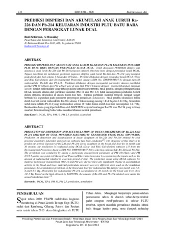 PREDIKSI DISPERSI DAN AKUMULASI ANAK LURUH Ra-226 DAN Pb-214 KELUARAN INDUSTRI