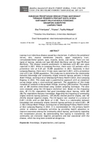 Kusta merupakan jenis penyakit menular melalui kuman, Penyakit ini menyerang syaraf tepi, kulit, mukosa (mulut), saluran pernapasan bagian atas, sistem retikulo endotelia, mata, otot, tulang, dan testis. dan ada 2 jenis penyakit kusta yaitu kusta basah tipe MB (Multi Bacillary), kusta kering tipe PB (Pasui Bacillary) yang masih menjadi permasalahan di Indonesia sebanyak 4,03 kasus baru pada th 2021 dan diprovinsi lampung sebanyak 122 penderita dengan angka prevelensi 0,20 per 10.000 penduduk tahun 2021 khususnya di Kabupaten Lampung Timur Pada tahun 2021 terdapat penemuan kasus baru yang menderita penyakit kusta sebanyak 14 penderita dengan angka prevelensi 0,2 per 10.000 penduduk. Diketahui Hubungan Pengetahuan Dengan Stigma Masyarakat Terhadap Penderita Kusta Di Desa Karya Mukti Wilayah Kerja Puskesmas Sekampung Kabupaten Lampung Timur Tahun 2023. Jenis penelitian kuantitatif. Rancangan survey analitik dengan pendekatan cross sectional. Populasi dalam penelitian ini adalah semua masyarakat yang ada di Desa Karyamukti sebanyak 1200 Kepala Keluarga (KK) deangan jumlah sempel 300 Kepala Keluarga (KK). Pengambilan sampel menggunakan teknik random sampling. Analysis data menggunakan uji statistik Chi Square. Berdasarkan data frekuensi pengetahuan tentang penyakit kusta berpengetahuan baik 40 (13.3%), berpengetahuan kurang 260 (86.7%) dan data frekuensi stigma masyarakat terhadap penderita penyakit kusta stigma positif 138 (46.0%), stigma negatif 162 (54.0%). Hasil uji Chi-square didapatkan nilai p value 0.001 (<0.05) dengan Odd Ratio 3.182. Adanya hubungan pengetahuan dengan stigma masyarakat terhadap penderita penyakit kusta (p value 0.001. OR 3.182) di Desa Karyamukti Wilayah Kerja Puskesmas Sekampung Lampung Timur tahun 2023. Bagi pihak Puskesmas disarankan meningkatkan kegiatan bagi masyarakat dengan cara memberikan pendidikan kesehatan kepada masyarakat tentang penyakit kusta khususnya proses penularan penyakit kusta. Sehingga dengan mengetahui penularan penyakit kusta, masyarakat tidak lagi memiliki anggapan negatif dan takut dengan penyakit kusta yang selama ini dianggap sebagai penyakit yang berbahaya.